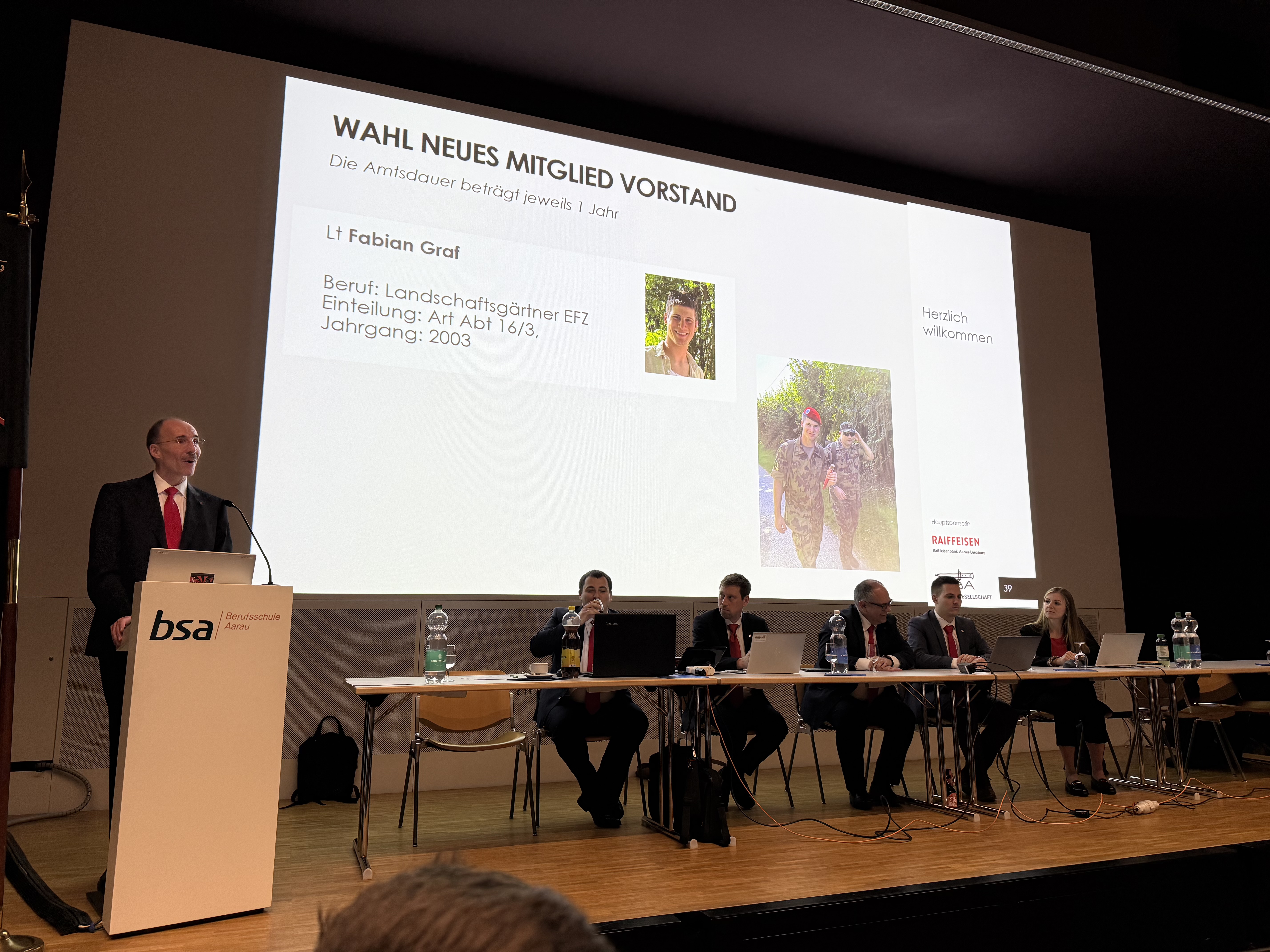 Schliesslich wurde unsere bisherige Hauptsponsorin, die Kunstgiesserei Felder & Wittlin, nach der 5-jährigen Unterstützung verdankt und die neue Hauptsponsorin, die Raiffeisenbank Aarau-Lenzburg, vorgestellt, wobei Clemens Hochreuter, Leiter Firmenkundenberatung, einige Worte an die Versammlung richtete.