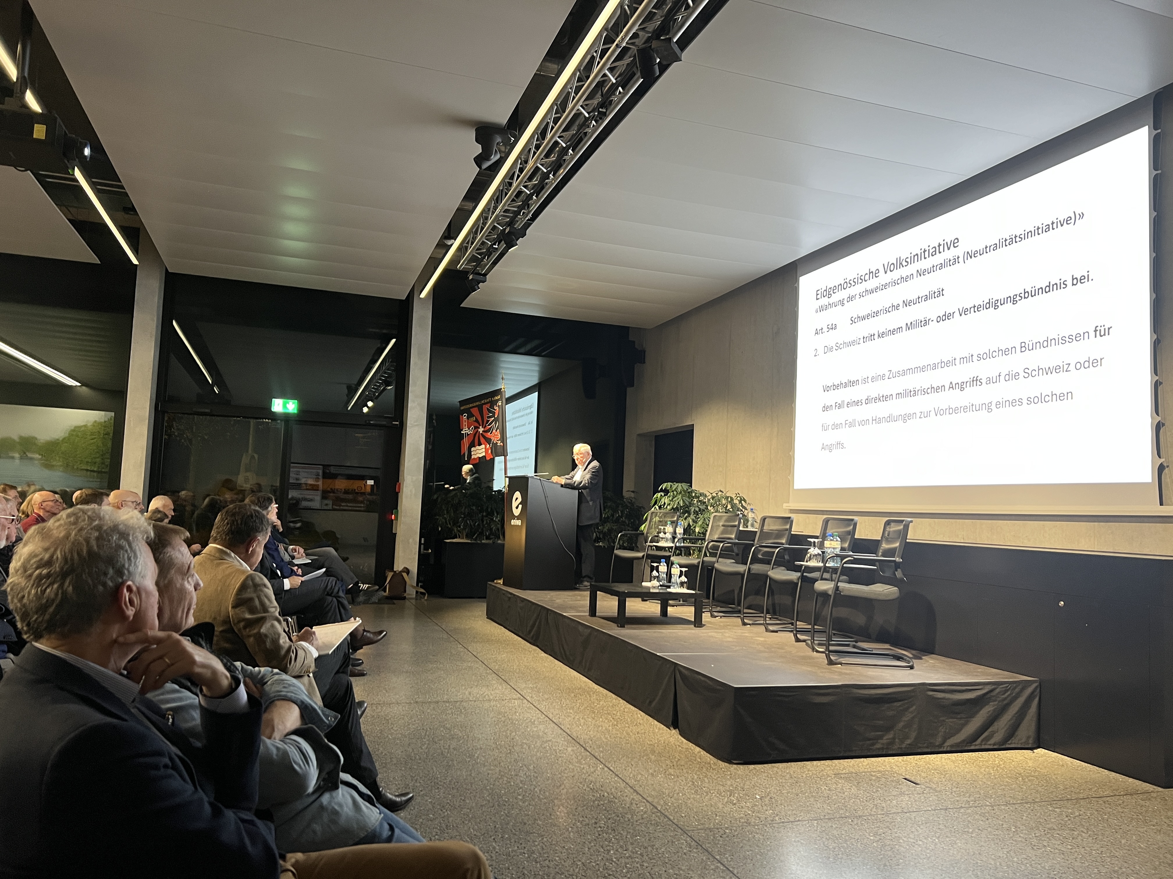 Anschliessend ging er auf die wesentlichen Punkte seiner Neutralitätsinitiative ein, welche demnächst im Parlament behandelt und anschliessend dem Volk zur Abstimmung unterbreitet wird. Speziell betonte er, welche Teile davon nur festhalten, was bereits heute praktiziert und gelebt wird, und welche Teile eine Änderung im internationalen Umgang zur Folge hätten.