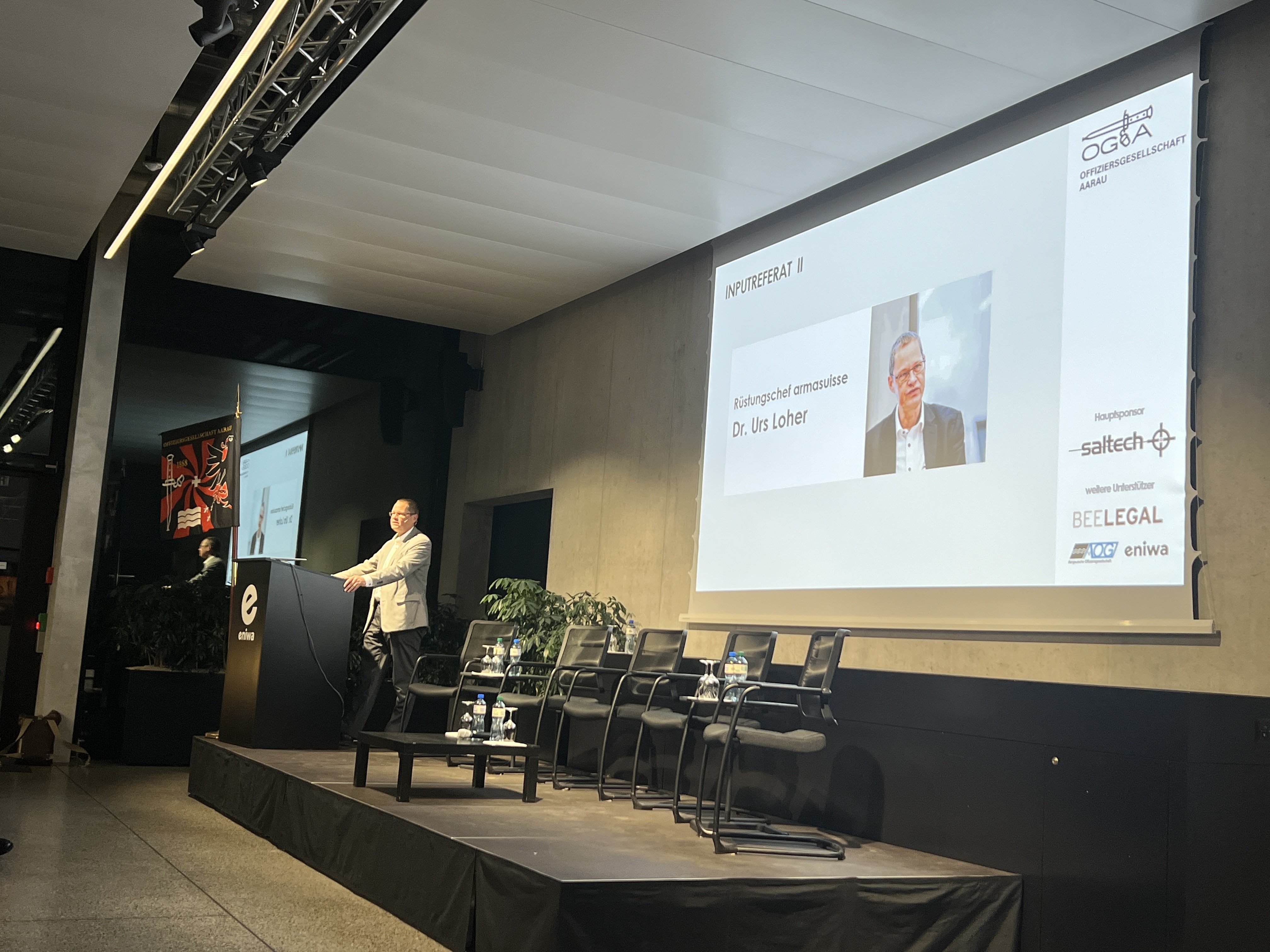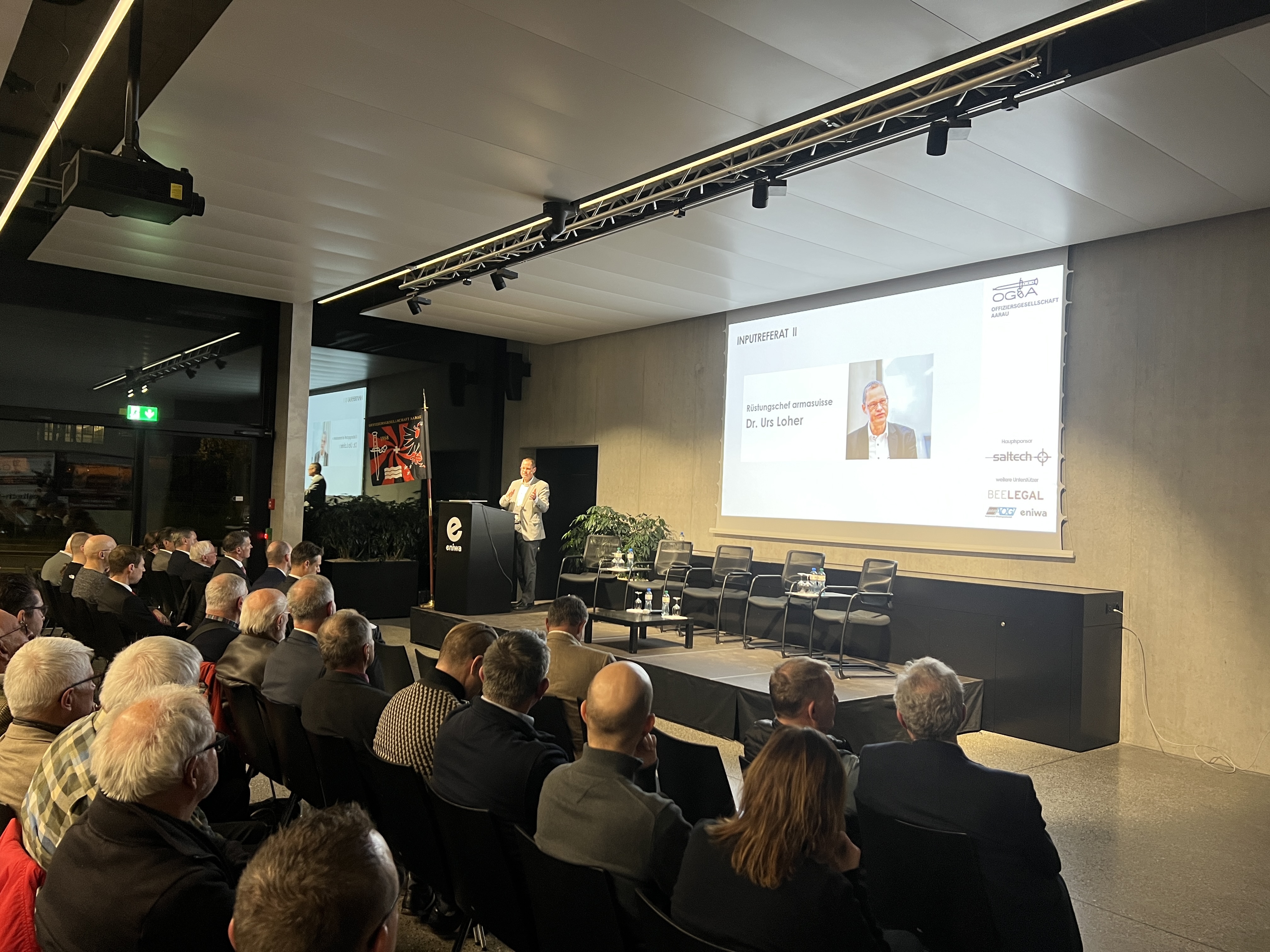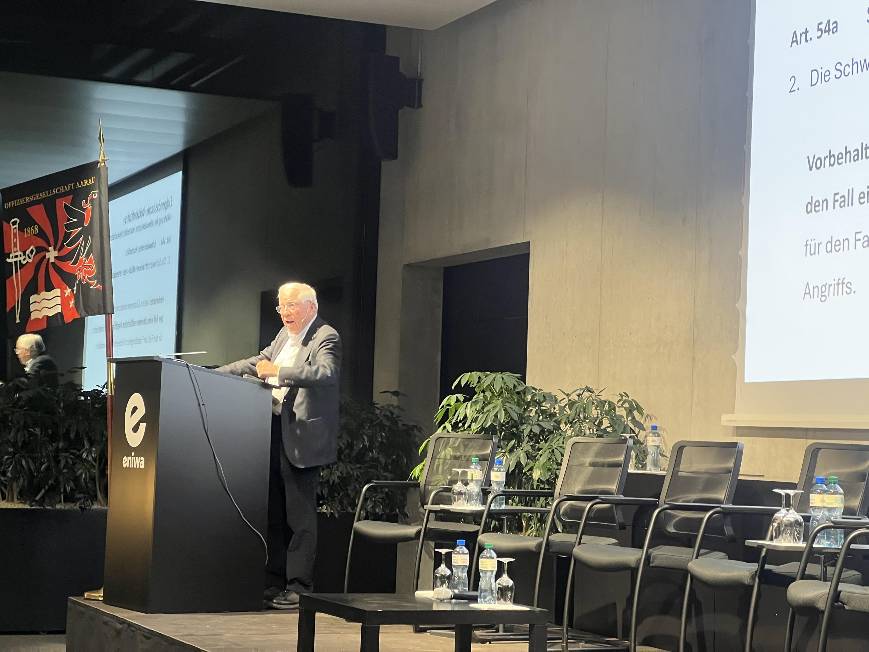 «Während in Grossbritannien aktuell sieben Munitionsfabriken aufgebaut werden, sind wir daran, zwei zu verlieren». Mit diesen Worten eröffnete Rüstungschef Dr. Urs Loher sein Referat. Er stelle sich dieselbe Frage wie die OG Aarau: Wann rüstet die Schweiz endlich auf?